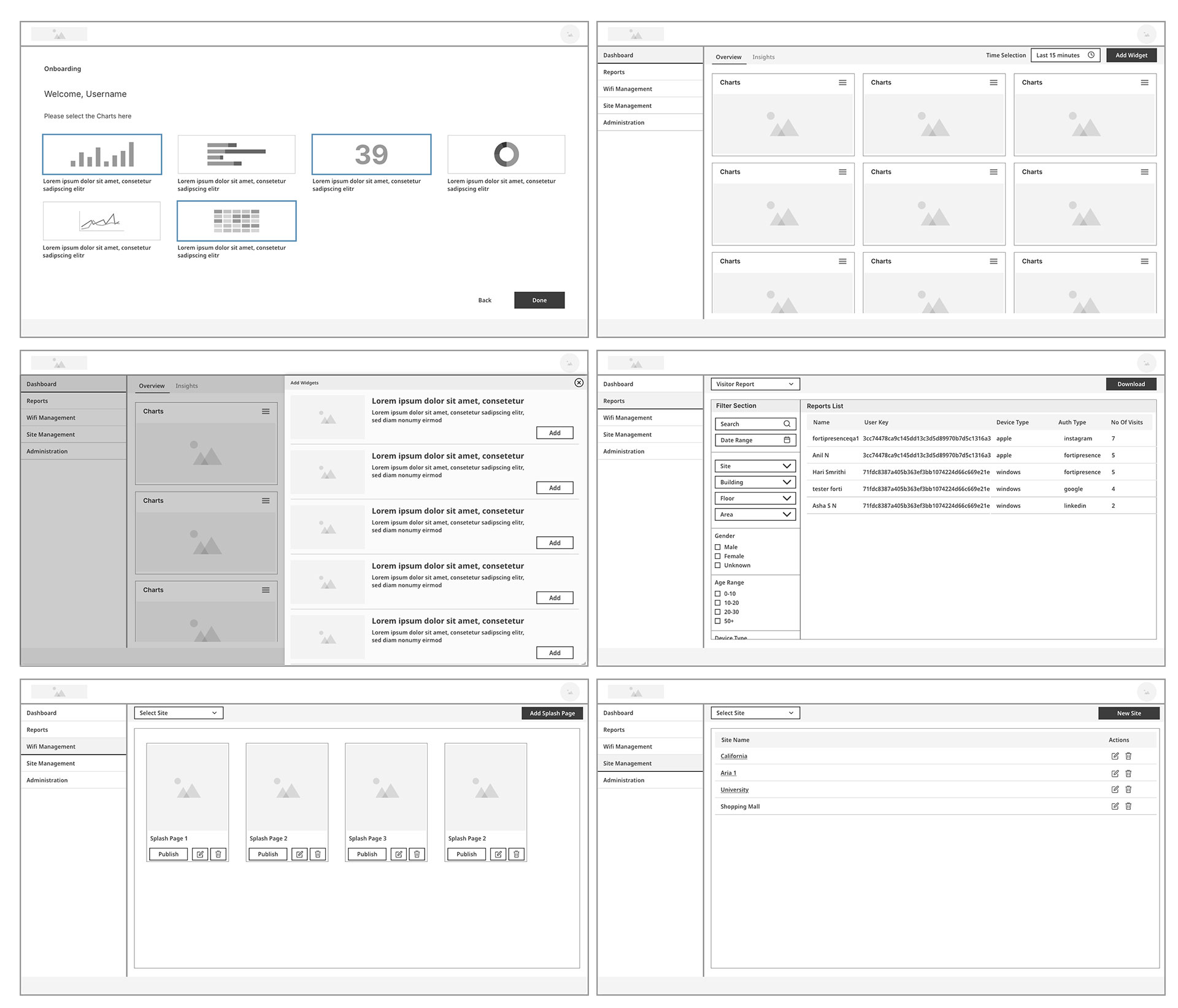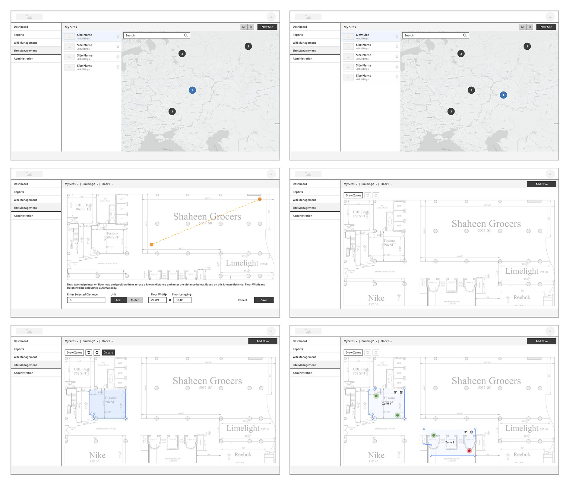 The Hi-Fi designs deliver a comprehensive location analytics platform, enabling easy portal creation, real-time visitor insights, and precise site-zone mapping. Together, they empower IT and marketing teams to enhance on-site experiences and operational visibility.